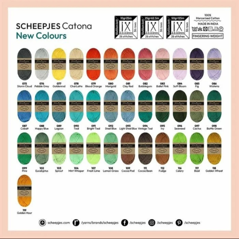De nieuwste ontwikkelingen rondom Scheepjes Catona (per april 2026) zijn de toevoeging van 37 nieuwe kleuren, waarmee het totale kleurenpalet op 150 kleuren komt